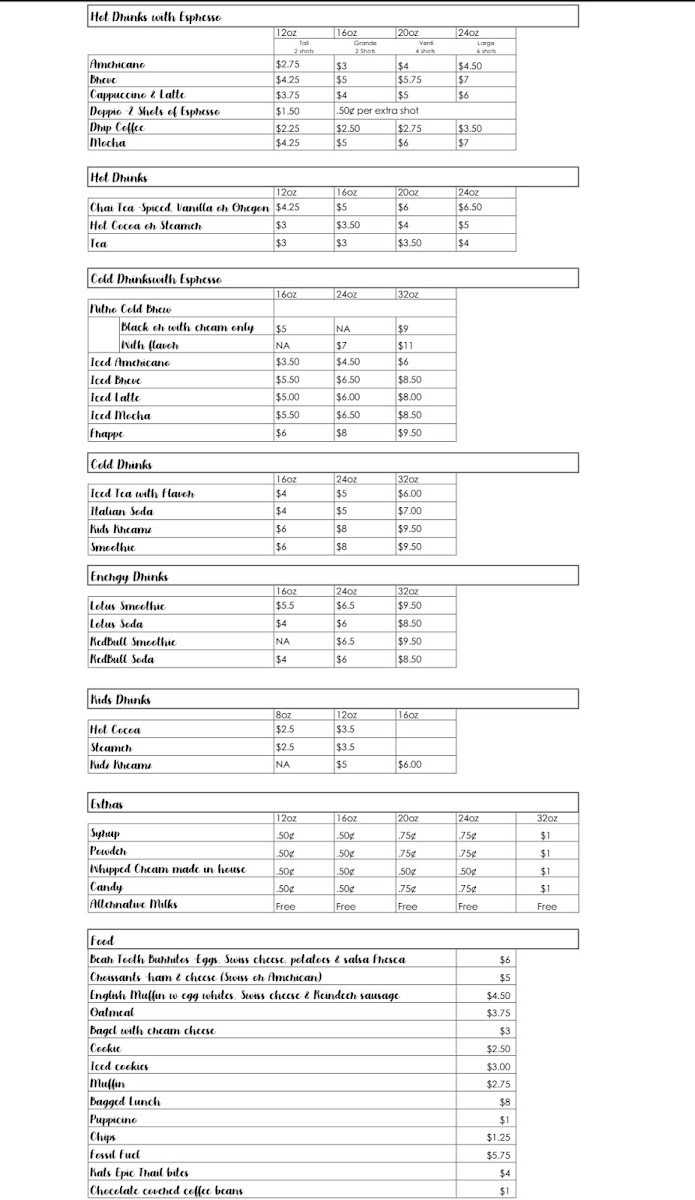 Common Grounds Espresso Menu
